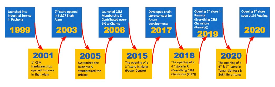 “The group now comprises CSM Hardware Holdings Sdn Bhd, CSM Hardware Sdn Bhd, CSM Engineering Hardware (M) Sdn Bhd, CSM Power Centre Sdn Bhd and CSM Hardware Seksyen 27 Sdn Bhd. Last year (In 2018), it achieved a turnover of RM50 million”The Edgemarket